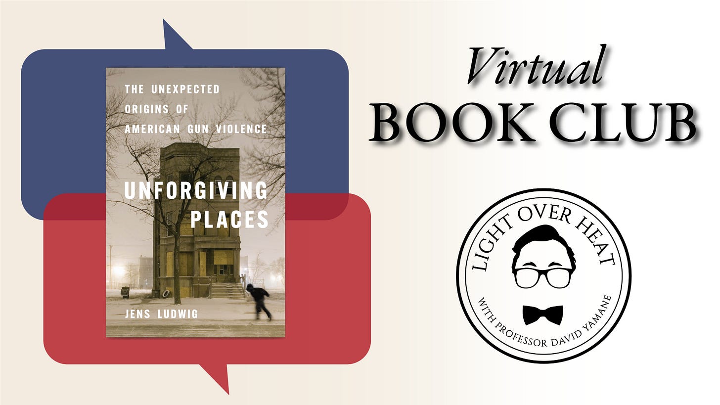 Please join us for the next book club series, Unforgiving Places: The Unexpected Origins of American Gun Violence by Jens Ludwig. Book club information is here and a link to register for the Zoom webinar is here (one registration for all sessions).